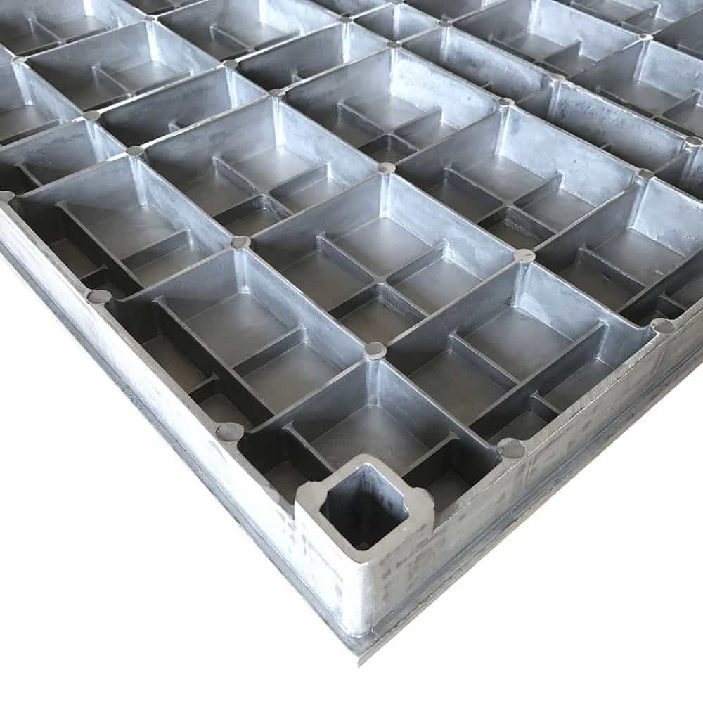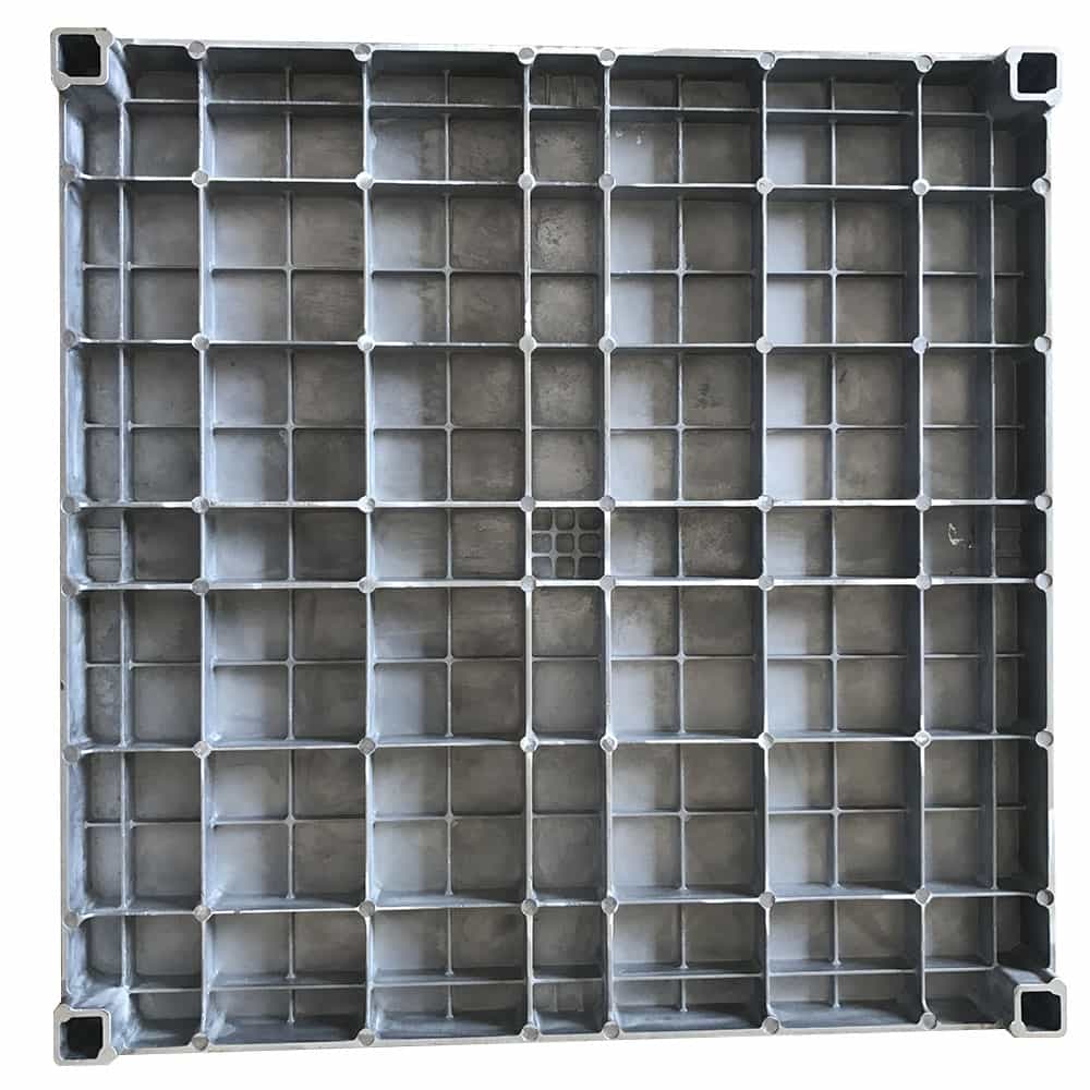 鋁合金地板采用高壓壓鑄工藝,鋁錠熔化后,經高壓壓鑄機一次性真空壓鑄成形,融合了鋁合金耐腐蝕的特性,地板表面可根據需要進行環氧樹脂噴粉或鎳鉻電鍍,從而表面達到柔光、防腐、耐磨效果。